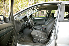 În caz contrar, nici măcar privirea plină de defecte nu va găsi. Este inutil să cauți defecte în colorarea și montarea panourilor corpului. Pe partea din spate a rezervorului de gaz, apropo, împreună cu ușile și capacul portbagajului, pot fi blocate de la fob -ul cheie, este prevăzută o duză detașabilă, care, fără a fuma mâinile, poate deșuruba capacele supapele. Arcadele roților sunt acoperite în mod fiabil cu plastic și un strat gros de mastic. Datorită etanșării duble a ușilor, praful nu pătrunde în salon, iar pragurile rămân curate pe vreme rea.