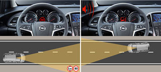 Astra este în vigoare a multor concurenți. Mașina a primit sistemul Opel Eye (dezvoltat în comun cu Hella), care Insignia a devenit platforma de debut. Opelian Eye, merge ca o opțiune, el observă semnele și poziția mașinii pe carosabil folosind o cameră foto situată în partea superioară a parbrizului.