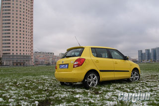 Se știe de mult timp că mașinile urbane compacte ar trebui să fie culori luminoase, saturate. Este o pată veselă galbenă pe zăpada murdară a nămolului, care este prima senzație a noii Fabia. Cercetările viclene ale farurilor, precum trailerul Skoda Roomster, rafturile negre invizibile ale unui mini cooper au inspirat și Suzuki Swift. Dar, în ciuda citării, mașina arată proaspătă și chiar la modă. Hatchback -ul a crescut cu 22 mm lungime și 48 mm înălțime. Dar, după cum s -a dovedit, nu numai în dimensiuni