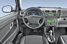 Versiunea cu cel mai puternic motor pe benzina 1.6 16V cu CP automată include un sistem de stabilizare electronic de stabilitate, desigur, în pachetul de bază. De asemenea, se prevede un sistem anti-pass și un sistem de control al presiunii aerului automat în anvelope. faruri adaptive, care sunt mult mai bine iluminate de carosabilul, permițând șoferului să observe obstacolele anterioare. În plus față de faptul că luminile de ofertele Skoda de ceață cu funcție Cornering pentru Fabia Combi: În funcție de direcția de rotație, ceață la stânga sau la dreapta se aprinde aprinde, iluminarea sectorului în 60 lângă mașină, vă permite să vedeți pietonală și ciclistului. , precum și garduri rutiere. Farurile cu lumină de lucru pivotant la o viteză de până la 40 km / h.