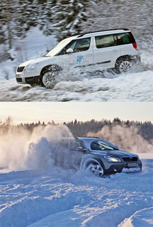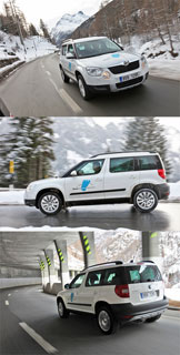 Pe Yeti si tractiune integrala Octavia, avem timp pentru a merge de mai multe ori. Prima cunoștință cu un om de zăpadă a avut loc în Slovenia, în primăvara anului trecut. All-roți octo cu noua cuplare Haldex, am încercat pentru prima dată în Suedia la începutul anului trecut. Acum am urmărit mașinile în Alpam elvețian. Aici este întreaga gamă de dificultăți rutiere: trece cu multe ascensoare și coborâri și coborâri, zăpadă, gheață, exploziile, tranziții periodice prin temperatura zero, autocan de mare viteză