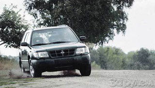 Mișcare - 4.1 puncte. Motorul de pe forestier a primit aproximativ aceleași recenzii ca și aspectul (motorul ca motor). Nu există o sursă de alimentare imensă, nu împinge scaunul în spate, dar, în același timp, mașina este foarte vie și departe de ultimul în pârâu. O singură opțiune atunci când atributele mașinii sportive nu sunt (cu excepția, probabil, subarovsky caracteristic, fie că Reva, fie că există o accelerație pe accelerație), dar vă simțiți pe drum dacă nu împărați, atunci exact pe cineva înalt - marcaj. Și toate acestea, cu conservarea prieteniei tradiționale a Subaru la șofer. Riding Forester este simplu și frumos. Pe un asfalt bun, neted, mașina nu se dă nimic - este liniștită, este moale, rapid, volanul este ușor (în mod natural, cu un hidraulicator), frânele cu ABS - totul este bine. Și care este pârghia de lângă frâna manuală? Acesta este, domnilor, demultiplier și pur și simplu - transmisie redusă. Mașina, care este în discuție, este ceva mediu între mașina de pasager și sacrificiu, și de la acesta din urmă a împrumutat foarte mult (nu numai clearance-ul sporit). Apropo, am văzut deja un astfel de dispozitiv pe Legacy-Universal. Ei bine, dacă există ceva în mașină de la trecere, așa că trebuie să vedeți ce este capabil în afara autostrăzii.