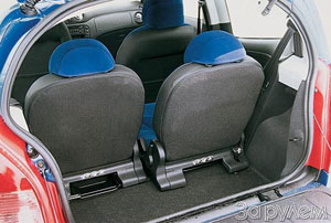 Давно замечено: с увеличением размеров наружной светотехники автомобиль выглядит и более стильным, и более узнаваемым. Это в полной мере относится к Це-второму. На фоне его миниатюрного капота большие фары кажутся просто огромными. Они не так округлы, как у коллеги Ситроена-С3, хотя по стилистике весьма схожи. Спереди С2 кажется более динамичным, а смотришь сбоку - так и хочется сказать: экий обрубок! Настолько быстро сходит на нет крыша в задней части. Неужели там кроме багажника есть места для сидения? Надо же, действительно есть. Два раздельных креслица с подголовниками могут ездить на салазках вперед-назад, меняя объем багажника. Говорить же о том, что эта регулировка дает что-то задним пассажирам, не приходится. Взрослый может пробраться назад и даже самостоятельно вылезти, но ехать здесь не очень-то - тесно!