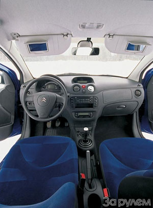 Att tillskriva små bilar till rent damer - ett drag i den ryska mentaliteten. Gamla Freud skulle definitivt hitta vad man ska säga till den starka halvan om detta. Objektivt är Citroen C2 en medborgarbil som inte belastas med en familj eller en andra bil i huset. Och som oftare kommer att sitta på rattet - familjens huvud eller keeper på härden - förändrar ingenting. Låt oss gå tillbaka till bilens inre. Om du tittar från förarens plats är C2 nästan inte annorlunda än C3: samma kombination av enheter med en switchväter och en elektronisk hastighetsmätare, samma skärm i mitten av frontpanelen, informerar om temperatur överbord, tid på dagen eller en välklad av dörr. Hantering av allt yttre ljus (inklusive dimljus) och torkar - på rattomkopplare. Och i slutet av höger, dessutom justering av kanaländringarna och volymen på standardradio.