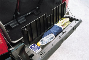 Den bakre dörren är mycket kompetent gjord av två sektioner, den övre stigande och nedre vikningen. ‹Avgång› En sådan dörr utanför när öppningen är betydligt mindre än för dörren till den klassiska hatchbacken (detta är mycket viktigt när bilarna parkerar stötfångaren till stötfångaren), och du behöver inte öppna hela frakten ›om du Behöver du kasta några små saker i bagageutrymmet nog höja det övre avsnittet. Och den nedre i ett vikta läge kan bland annat tjäna som ett picknickbord och till och med en bänk (har en belastning upp till 100 kg); Dessutom är en avslutande mikrobagger med en volym av 5 liter med ‹oberoende› åtkomst i den också integrerad i den eller inte, det spelar ingen roll. Bekväm. Stammen är mycket liten bara 166 liter. Men det interna transformationssystemet är gjord av sinnet genom att manipulera med separata baksäten som går fram och tillbaka och viks ganska kompakt, stammen kan blåsas upp till 879 liter. Det är acceptabelt för staden.