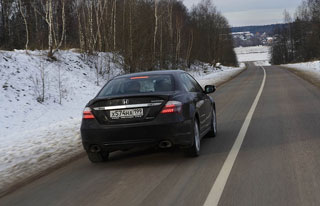 Så det finns i acceleration till hundra ny legend kastade 0,2 sekunder. Drog upp och automatiskt. Han förblev femväxlad, men det fungerar smasher och lite snabbare. Legend, precis som alla Honda (ja, med undantag för stora crossovers och pickups), älskar att rida snabbt. Driver startar här uttrycks genom elastisk fjädring och bra dynamik. Ändå kan vi konstatera en nästan genomskinlig, långa ratten eller till exempel, mjuk, helt unsportsmanship. Fight motsättningar? I en viss mening, ja. På en kopp vikter en otrolig fyrhjulsdrift och en utmärkt motor med en god suspension. Å andra gamla fem steg automat, entydigt bekväm salong, utan av olika typer av sport approxes, en vag ratten.