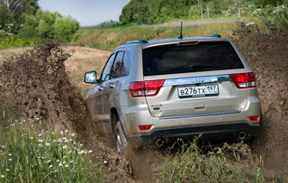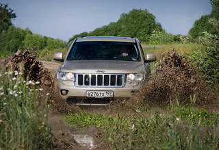 Men framför en suddig väg eller stor och djup fältpöl är det bättre att välja lera/sandläge (smuts/sand) i det stänger av anti -vingar -systemet och Grand börjar säkert gräva marken med tandiga däck . Sänkningen i de flesta fall är i allmänhet onödig: den mäktiga V8 har en outtömlig dragmarginal i vilket hastighetsområde som helst. Därför måste den 4WD/låga knappen bara pressas en gång för att tvinga en brant lyft av bulkjord.