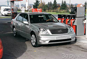 Lexus LS430. ОБЩИЕ ДАННЫЕ: число мест - 5; снаряженная масса - 1830 кг; максимальная скорость - 250 км/ч; время разгона с места до 100 км/ч - 6,7 с; расход топлива в условных загородном и городском циклах - 8,9; 17,5 л/100 км; запас топлива - 84 л; топливо - АИ-95. РАЗМЕРЫ, мм: длина - 5005; ширина - 1830; высота - 1490; база - 2925; дорожный просвет - 145; объем багажника - 525 л. ДВИГАТЕЛЬ: бензиновый, восьмицилиндровый, V-образный с распределенным впрыском, четыре клапана на цилиндр, с регулированием длины впускного коллектора и фаз газораспределения; рабочий объем - 4293 смз; диаметр цилиндра и ход поршня - 91,0х82,5 мм; степень сжатия - 10,5; мощность - 207 кВт/284 л. med. при 5600 об/мин; максимальный крутящий момент - 430 Н.м при 4100 об/мин. ТРАНСМИССИЯ: привод на задние колеса; коробка передач - автоматическая пятиступенчатая. ПОДВЕСКА: независимая гидропневматическая со стабилизаторами поперечной устойчивости, собрана на подрамниках, спереди - двойные поперечные рычаги, сзади - многорычажная. ТОРМОЗА: гидравлические вентилируемые, дисковые с вакуумным усилителем и АБС. РУЛЕВОЕ УПРАВЛЕНИЕ: реечное с усилителем переменной производительности. РАЗМЕР ШИН: 225/55R17.