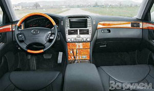 För en passagerare Sång i Lexus LS430, det finns inget behov av att kraftigt klappa dörren. Det är nog bara att täcka ett klick, och automationen själv kommer att dra den på plats. Hjulbasen växte med 75 mm, på grund av vilka öppningar på bakdörrarna expanderades, och utrymmet för passagerarna som sitter bakom passagerarna var helt enkelt enormt. I enlighet med bilklassen betalas de här. Särskild uppmärksamhet är betald: servos kan föra var och en av halvorna av soffan i hälften av positionen (när dörren öppnas, kommer de att återgå till platsen för bekvämligheten med avstigning), och den högra främre stolen är att flytta framåt för att sträcka benen; Tryck på huvudbegränsningarna, sätt på den inbyggda uppvärmda, massageraren (!) Eller ventilationen av sätena. För första gången genom perforerad naturlig hud av sitt sätesbeläggning pumpas luftkonditionerad luft. Är det värt att prata om triflesna: gardiner på fönstren, ett kylskåp i armstödet, individuellt klimat- och ljudkontrollpaneler.