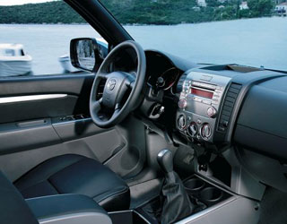 Inne i dubbelkabinen påminner väldigt mycket den vanliga SUV. Dessutom kan vi prata om en dyr SUV, som bekräftar det rika läderklädseln. Dashboardet, som nu fått den röda zoomzoombelysningen, består av tre ringer med silverkantning. Ett sådant beslut bör erkännas som kontroversiellt eftersom den gröna färgen enligt vissa ägare av BT-50, var mer lämplig för bilens natur.