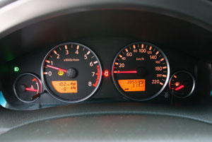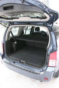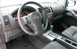 Men i Navara blir det trångt om mer än fyra vuxna försöker rymma i kabinen, och Pathfinder, utan att blinka ett öga, kommer att ta sju! Jag kontrollerade vad det skulle vara lite värre på den tredje raden än i den andra i Navara. Salongerna för båda modellerna är desamma. Och här är det inte till Pathfinders ära måste erkänna att han inte kommer att räcka en sådan interiör. Särskilt om du tänker på konkurrenter i en prisnisch för 60 (en bil som har varit på testet dras exakt för samma belopp i Kilobax). När det gäller design, inspirerar allt en bra lakonisk techno respekt, rattet är tillverkat i samma stil med 350Z och ändå ser ganska lämplig ut här. Men det finns inga glans, höjdpunkter, intressanta och olika strukturer i dekorationen, trots att byggkvaliteten och de använda materialen uppfyller dagens krav. Känslan av överdriven enkelhet lämnar inte den kommer inte att mjukas ens en original chipnyckel, som känns igen av bilen på avstånd och låter dig öppna och starta bilen utan onödiga manipulationer.