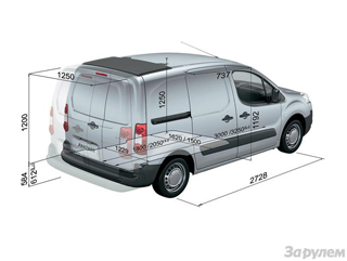 En ny partner kommer att släppas i två varianter av längd: 4380 och 4628 mm med samma databas med 2728 mm. Standardversionen L1 har ett lastutrymme med en längd av 1800 mm och en volym på 3300 liter. L2-varianten kännetecknas av en fjärdedel av en meter med bakre svett, så att fackets längd har vuxit till 2050 mm och volymen till 3700 liter (med multiflexsystemet, 3000 mm / 3700 l och 3250 mm / 4100 l). På taket gjordes luckan för transport av långa tröjor, det franska kallade sin giraphon för att uppskatta bilden av att tänka! Top Passenger Modification Off-Road Peugeot Partner of Tipi Outor. Dess särdrag på tak på taket, svart uppackad stötfångare med en silver ramöverlagsfront, ökade med 10 mm vägavstånd, skydd av motorrummet, däck 215 / 55R16 på legeringsskivor och ... Standardkörning på framhjulen. Den upphöjda lastversionen av platspaketet (konstruktionspaket) är praktiskt utan att rota samma ytterligare 10 mm lumen och hjul 195 / 70r15.