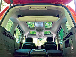 Typiskt sätter de på taket, i högpartnern, ett annat par lyckades montera inuti. Det finns skidor eller andra varor till 2 m lång och 20 kg vägning. Lösningen är original, men inte utan nackdelar med smältrester av snö från skidor kommer att droppa över passagerarnas redskap.