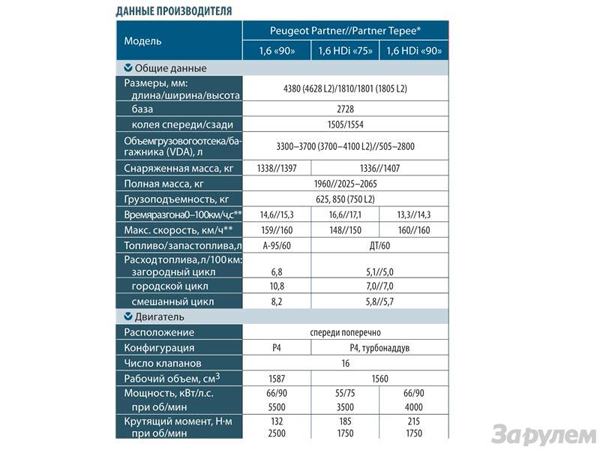 Volymen är enig Nyfiken Fakta: Alla sex olika kraftenheter för den nya partnern har en arbetsvolym på 1,6 liter. Fråga varför och varför? Det är väldigt enkelt om makten mest var beroende av volymen, nu är det lättare för att justera förändringen i hjärnans firmware och i närvaro av en trycktryckskompressor. Inga harves med olika dimensioner av cylindrofongruppen! Faktum är att samma atmosfäriska bensinmotor ger 90 eller 110 hk. Eller till exempel fyra HDI Turbodiesel, med en kapacitet på 75, 90 (två alternativ: med en turbinvariabel geometri och vanligt) och 110 hk Förresten är båda 110-starka motorerna endast avsedda för en dynamisk passagerarmodifiering.