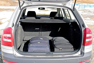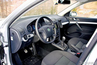 Så det besökande kortet i scouten bakom den öppna dörren verkade silveröverlagringar med inskriptionsscouten. Det kan emellertid också skiljas från vanligt oktavia genom den ursprungliga svarta inredningen, inklusive säten som är mantlade med tunt nätmaterial. Men den mest slående funktionen som fångar ögat är ett beslagtaget ledstång över en duffelbox, som verklig höjd. Efter att ha studerat varandra lite, åkte vi på vägen. Vår uppgift är att hitta i bergen basen som anges på kartan. Under huven har maskinen en 140 hästkraftsdiesel med en volym av 2,0 liter.