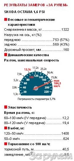 Från och med måndag använde jag alla skäl för att åka någonstans vid ratten i Octavia. Han besökte träningsplatsen, där bilen mättes på en dynamometrisk väg. Jag fick jobba och tillbaka. Jag besökte ett par butiker. Jag körde in i Crocus Expo. Och allt letade efter i henne några speciella för tyvärr! Senast på torsdagen dök upp en skiva i anteckningsboken: inte en mycket läcker bil. Något korta nedre växlar ger en bra och mycket jämn acceleration, och du vill alltid beskriva en kraftfull pickup! 115-hästkraftsmotorn 1,6 liter med direkt bränsleinsprutning berövas den. Det är riktigt att det kan skryta med effektiviteten på tre timmar i trafikstockningar medförde en konsumtion på 11,4 l/100 km, vilket de fria vägarna för nästa dag hjälpte till att minska till den totala 8,8 l/100 km. Detta resultat skakades inte varken mätningar vid deponiet eller en resa till grannområdet.