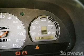 Broms- och gaspedalerna samlas - du kan bära foten från en pedal till en annan utan att riva hälen från golvet. Kopplingen skjuts tillbaka till vänster, bredvid den är ett brett område för avkoppling. Men intrycket av en tydlig inkludering av programmen förstör något den misslyckade plastknappen i spaken. Det verkade som en bagatell, men det var bekvämt att ta på något sätt. Jag kom ofrivilligt ihåg den vanliga Zhigulevsky -bollen - satte handflatan på honom, svepte fingrarna - och slog på varje växellåda. Men denna lilla brist är lätt att eliminera. Det finns tre runda urtavlar på instrumentpanelen - en varvräknare, en hastighetsmätare och en indikator på en ruttdator. Det senare är användbart för dem som försöker spara pengar eller vill ta reda på ytterligare data. Snälla: Omedelbar och genomsnittlig bränsleförbrukning, kylvätska och oljetemperatur, daglig körsträcka, medelhastighet, bränsle kvar i tanken. Resten av informationen markeras av kontrolllampor. Knappar, vippomkopplare, rattomkopplare är utrustade med förståeliga ikonogram, du vänjer dig på dem på några minuter. Mycket viktigare är synlighet från förarens plats.