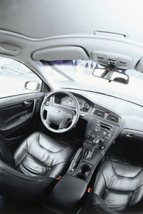 Under huven - en tvärs belägen 2,4 l motorn. Uppmärksamheten lockades av tvärbalken mellan stöden av de främre upphängningsställen. Till att börja med tänkte jag att de på detta sätt beslutade att öka kroppens hårdhet, men vid närmare undersökning visade det sig att det vid korsmedlemens ändar fanns gummi -metallgångjärn - tysta block. Och sedan märkte han också ett gångjärn i mitten av strålen. Sammantaget visade sig vara det övre stödet för motorn. I salongen i en frivillig är rymlig. Avsluta i grå toner. Den gråa huden på sätena är i harmoni med plastplasten i torpedon, som, låt oss säga, är för mycket - fria ytor är smärtsamt omfattande. På grund av detta verkar Torpedo rustik, även om dess form är ganska modern, och kvaliteten på tillverkningen och montering är hög. Den centrala delen ockuperas av det inbyggda ljudsystemet, klimatkontrollknapparna och andra små saker, inklusive växelströmbrytaren för DSTC (dynamisk stabilitet och dragkraft) växelkursstabilitet, en penna eller pennklämma och en ombord ombord nätverk. Nedan är en transmissionsväljare (vår V70 är utrustad med en automatisk maskin), två kopphållare mellan sätena.