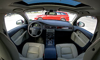 För en provkörning valde vi V70 D5-versionen med den senaste Aluminiums femcylindriga turbodiesel, som i sin klass 2.4 har en låg vikt, hämtning, effektivitet och direkthet (vridmoment på axeln når 400 nm). Förutom kraften försökte svenskarna ge den årsdagen tionde generationen universell och intelligens. Förbättrade algoritmer för arbetet med en sexhastighets växellikmaskin. Vagnen kan vara utrustad med en adaptiv farthållare (övervakar hastigheten och avståndet till bilens last), BLIS-systemet för övervakning av blinda zoner och en radist av en farlig närmande som kastar upp en ljus skarlet-signal till vindrutan (under Dagtidstrafik kan irritera, men på dagtid är mörk tid extremt användbar). Han undrade och chassit i Volvo Four-C-systemet övervakar ständigt vägen och sätter styvheten av stötdämpare med ett bekvämt, sport eller avancerat program, och den aktiva suspensionen tar också hänsyn till signalerna som mottagits från ratten , motor, bromsar och den elektroniska stabilisatorn DSTC.