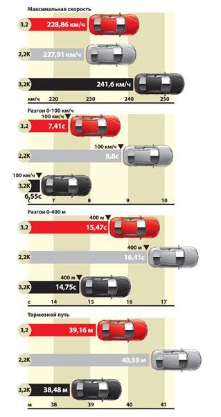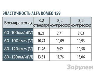 Harekete göre, şarj edilmiş motor sağır bile tanıyacak ve dava hiç yoktur (burada standarttır). Tahrik Supercharger'ın karakteristik sesi, Bypass valfi işleri böylece kötü tıslamayı tamamlar. Işığın dinamik özelliklerinin kazancı: Kompresör V6, 6,5 s için 100 km / s'lik bir işaret için alfa taşır ve 240 km / s yüksek hızlı bariyerin üstesinden gelmesini sağlar. Bu arada, 159.'nın maksimum hızı, iki yıl önce test ettiğimiz üstün 156 GTA ile tam olarak aynı şekilde (SP, 2007, No. 1). Sadece 320 HP'nin altında bir duyuru kapasitesi var Bir acı, sonra standart bir makine ile karşılaştırılamadık, şimdi böyle bir fırsat var. Ve güvenli bir şekilde belirtebilirsiniz: Kompresör etkilidir. Bu ek 13 km / sa maksimum hızın onaylanması. Ancak sorular var. Esneklik ölçümlerinin verilerine bir göz atın. Burada süper şarj pratik olarak kazanmaz. Dahası, beşinci viteste 60 ila 100 km / s'de, kompresör alfa atmosferik için aşağı.