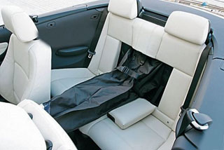 Gerçekten yenilikçi bir gelişme, güneşte çok daha az ısınan kabinin deri döşemesiydi. Şimdi, cilt üretimi, renkli pigmentler uygulandığında, güneş ışığının kızılötesi radyasyonunu yansıtır. Bu, koltukların ve kol dayamaların yüzeyinin ısıtılmasını önemli ölçüde azaltmanıza olanak sağlar. Daha önce kullanılan cilde karşılaştırıldığında, ısıtma sıcaklığı 20C ile azaltıldı. Doğru, tüm salonlar yeni deri ile sıkılmaz. Konfor için, bu seçeneği ayrı olarak ödemek zorunda kalacak. Cabriolet'in üst kısmı, gümüş tonu olan antrasit rengine sahiptir. dokuma malzemesi metalik görüntülü elde bağlı olan en ince iplikler, nüfuz. çatı yüzeyi etkin bir şekilde güneş dökülür.