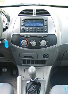 Salon daha da kolay. Bitirmesinde kullanılan gri plastik kesinlikle zordur, ön panel tasarımı karmaşık değildir, ancak tüm detaylar şaşırtıcı bir şekilde iyi görülür. Tiggo kabininde onlarsız koltuklarda ve kapılara küçük bir gri boyama mavi uçları can sıkıntısından ölebilir. Konsolun ortasında, çok büyük sayıların görüntülendiği geniş bir ekrana sahip büyük bir 2din radyo teyp kaydedici. Bu boyutta, ekran küçük bir TV olarak kullanılabilir, ancak yalnızca seçilen radyo frekansının sayısını gösterir ve çok parlamadır: her ikisi de öğleden sonra ve akşamları. Güneşli havalarda, müzik rastgele seçmelidir. Ve yumuşak ön koltuklar çok amorf, ve onlardan uzun bir mesafede, muhtemelen ortopedik kapaklar veya en azından lowin için bir yastık satın almanız gerekecektir.