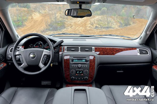 Amerikan mühendisleri daha sonra ne olabilir? Amerikalıları yeni bitirme malzemeleri kalitesi için övüyordum. Bu arabada otururken, aşağılayıcı bir şekilde söyleyemezsiniz: Amerika Buna ek olarak ne istediniz, nihayet dört vitesli şanzımanın artık moda olmadığını anladılar. Ve yeni Chevrolet Tahoe'da altı vitesli bir otomatik. Sonuç olarak, SUV'ın yüz kilometrelik bir şekilde yaklaşık 18 litreden daha az bir litre yakıt üzerinde yer. Overclock, aynı seviyede dokuz saniyede yüzlerce kaldı, bu, arabanın toplam kitlesini dikkate almadan bile oldukça iyidir.