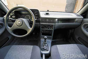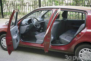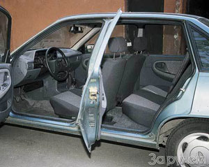 Kumaş döşemeden bahsetmiyoruz - patlayıcı plastik olmasa da her yerde zor. Çok acıklı değil, ama pratik - iki sayıyla yıkanır. Böyle bir arabanın fiyatı 8400 $. Sırasıyla, daha pahalıya pahalıya ek olarak, alarmın yanı sıra, sürücüler ve radyo ile merkezi kaleye girmek zorunda kaldı