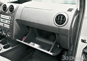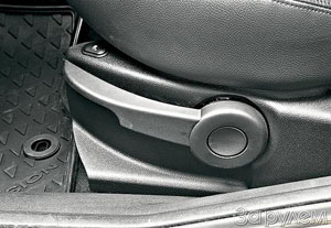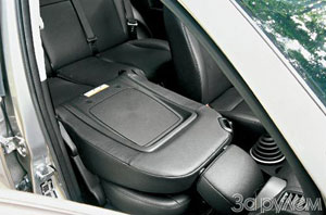 Bu arabanın sahibi muhtemelen sağ ön koltuğun gizli yastığı altında, küçük eşyalar için bir kutu var ve arka kolayca küçük bir plastik masa üstü olan bir tabloya dönüşür.