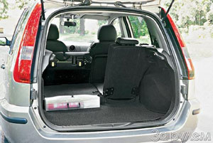 Yüksek iniş, arka yolcuların dizleri için bir yer vermenizi sağlar: İki yetişkin yakın çalışmayacak. Sit üçlü, biraz omuzları hasta etmek zorunda kalacak. Bu arada, emniyet kemerleri üçün arkasında, ancak orta kafa kısıtlaması sadece bir seçenek olarak sunulur. Arabanın uzunluğu ile zar zor 4 metreden fazla 337 l gövdesi çok iyidir. Bağlantıların bu tür başarısının şartlarından biri, arka yayların ve amortisörlerin altına sıkıştırılmıştır.