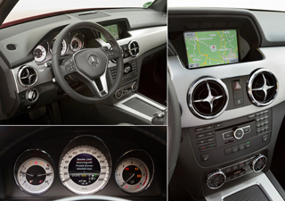 Güncelleştirilmiş GLK, yeni radyatör ızgarasında, yeni radyatör ızgarasında ve LED boomerangları olan farklı bir far formu için daha fazla muhteşem plastik kazandıran tampon tarafından ayırt edilebilir.