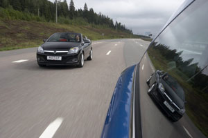 İlk başta, otomobilin dinamik yetenekleri etkileyici değil. Motoru 3000 rpm'nin üzerinde bükmezseniz, Cabricol bölmesi 1.8 litrelik bir motor (140 hp) ile Astra hatchback tarafından sadece biraz daha dondurulmuş olarak özneldir. Üretici bunu onaylıyor. Yüze kadar hızlanma 8,9 saniye sürer (Hatch'ten sadece bir saniye daha az). Bunun nedeni, ikiz topun neredeyse 200 kg daha ağır olmasıdır. Direksiyon simidi boş görünüyor ve fren pedalı biraz pamuk. Ama spor düğmesine basmalısınız ...