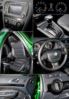 Mevcut Skoda Octavia modeli, genç değildir ve iç kısımdaki tasarımcı araştırması ile övünemez. Buna rağmen, Skoda Salonu, kaliteli, ferah ve mükemmel ergonomi ile karakterizedir. Rs - Koltukların versiyonunun, gelişmiş yanal desteği olan bir sporun ayırt edici özellikleri, bir spor üç kollu direksiyon simidi, pedallarda alüminyum pedleri ve psödokarbonik uçlar.