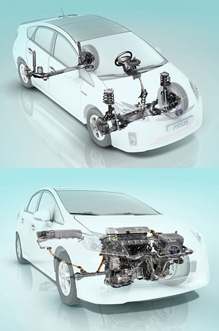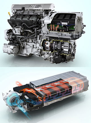 Birleşik Hibrit Sürücü Hibrit Sinerji Sürücüsü (HSD) ile Prius, benzinli motordan ve elektrik motorundan sürülür. Elektrikli bir otomobil gibi 70 km/s'ye kadar Prius, esas olarak elektrikli mütevelli heyeti yapamaz. Yoğun hızlandırmalar her iki motorun ortak çalışması tarafından sağlanır (en başından beri çalışabilirler). Hibrid Synergy Drive, tutarlı bir hibrid sistemi (yüksek yakıt verimliliği ve atık gazın düşük toksisitesi) ve iyi güç göstergeleri ile enerji tasarrufu avantajlarına sahiptir.