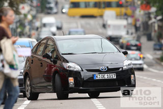 Tamamen tatmin edici olmayan bir inceleme, Prius'un en önemli zayıflıklarını ifade eder. Park sensörlerinin varlığına rağmen, kısıtlı alanda manevra bir işkence. Arka dişli açıldığında duyulan yüksek sesle gıcırtılı, burada yardımcı olmaz ve yükleyicinin sesini andırır. Prius'a yolda ve Autobahn, sakin bir şekilde gitmek daha iyidir.