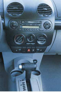 Direksiyon simidi oyuncak tarzında tasarlanmıştır - siyah, üç geniş alüminyum konuşmacı vardır. Konumu herhangi bir sürücüye ayarlanabilir - kolonun eğim uzunluğu ve açısı boyunca ayarlanması sayesinde. Kavrama güvenilir ve kullanışlıdır. Direksiyonda - bir güvenlik yastığı. Kabinde üç yastık daha var - koltukların dış taraflarında ve yolcunun önünde. Anahtar aletlerinin stilistikleri ünlü ataları hatırlatıyor. Ancak arka aydınlatmaları oldukça (aşırı değilse) modern: ölçekler parlak mavi, oklar kırmızı. Orta konsolda, klima altında - otomatik bir kol ve üç bardak tutucu (arka yolcular için - sadece bir tane). Ayna ayarları ve pencereler elektriklidir, kapılarda kontrol vardır. En önemlisi, Simser olmayan, sigara çakmakları ve kül tablalarının eksikliğini sevdi - bu görünüşe göre Amerikan sigara içmeye karşı mücadelesinin bir yankısı. Eski böcekten hareket eden sevimli bir detay, direksiyon simidinin sağındaki bir çiçek için küçük bir vazo, sadece resimlerde aramayın - bizden önce birini sevdi ...