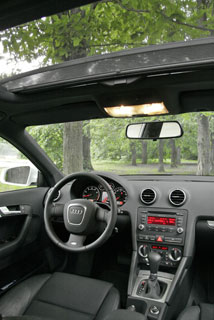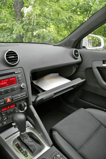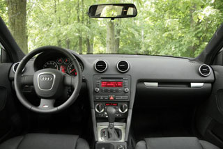 Зате як А3 управляється! Вона може бути суворою і прямолінійною, а іноді здатна на вольності і хитрості. Наприклад, під скидання газу або провокаційне хитання кермом трійка з задоволенням йде в легкий і легко контрольований замет. Та й при спокійному вкативаніі в віраж з боку машини не відчувається ніякого опору вона охоче лягає на дугу і в граничному повороті тонко балансує на межі занесення і знесення. Якщо ESP не відключати, А3 спокійний і динамічний автомобіль, а якщо скинути нашийник, то на звивистій доріжці Audi здатна доставити водієві масу позитивних емоцій, головне не заплутатися в 6-ступеневу автоматі і заздалегідь підібрати потрібну передачу. Тим, хто планує часто користуватися ручним перемиканням, можна порадити замовити в якості опції зручні підрульові пелюстки з ними їзда на А3 ще більш запальна. Не треба відривати руки від дуже чуйного і в той же час легкого керма. При гальмуванні двигуном трійка дуже заводна рикає. Під стать налаштування керованості і комбіновані спортивні сидіння S-Line, зшиті Recaro. Як не крути, а німці вміють робити чудові крісла. Так само добре лежить в руках і бублик. Салон балансує на межі розкоші та спортивності. Місцями інтер'єр прикрашають вставки з цього алюмінію, а в іншому він щедро декорований цінними і м'якими породами пластика. Ось тільки звучання магнітоли Audi Concert як і раніше розчаровує як німцям вдається інсталювати в хороші машини настільки средненькую аудіосистему? Передні сидіння, так само, як і рульове колесо, мають дуже великий запас регулювань в усіх напрямках, при цьому в будь-якому випадку за під