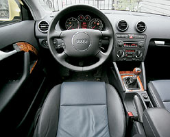 Ціна A3 в Росії починається з 20,643 євро. Так багато запитує основну конфігурацію етотрачного. На перший погляд, це дійсно виглядає привабливо: чотири подушки, абс, особливо, клімат-контроль. Але купуючи престижну ауді, важко поставити з простим пластиковою текстурою та тканинними сидіннями. Це має сенс платити за версію Embishn (22,289 євро) або навколишнього середовища (22 469 євро). A3 негайно з'являється колеса, регулювання водійського сидіння у висоту, шкіряному рульовому колесі та важіль, а також різний приємний салон дрібниці, таких як сітки для дрібних дзеркал, додаткової підсвічування та анти-паливо дзеркало заднього виду. На навколишньому середовищі є також дерев'яні вставки.