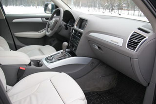 Я згоден занадто багато слів для запису. Це час, щоб зануритися в світ Audi салоні її, вона мені подобається! Натискання клавіші кнопка брелока Помаранчевих поворотников Q5 двічі блиснув, клацнули замки Ласкаво просимо! Що сказати? Дуже приємний салон, білий і сірий. І за кольором, і по суті. Sleeper-кремовий, майже біла шкіра сидіння знає, я буду працювати в виданні іншого профілю, був би порівняти це добре, ви знаєте, що. Або з ким. І тому я просто сидіти на ній, і ківш сидіння бере мене не чіпкі, але сильні обійми. Трохи вище, ніж потрібно, сторона попереку легко натиснути клавішу, і вона слухняно ковзає вглиб і вниз. Повторне натискання і місце піднімає мене вгору. Навіть спина змінює нахил. Все відбувається так тихо, що це відбувається без моєї участі. Ноги довгі? Не біда, є суб-вхід в передній частині сидіння, він може бути витягнуть. Ну, як зручно? Зручно!