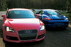 Кажуть, що ці автомобілі не можна порівнювати один з одним. Новий Audi TT Coupe становить 2 + 2, а Cayman S - суто подвійне снаряд. Перший двигун розташований у носі і веде машину з передніми колесами, а другий - це автомобіль - середній автомобіль, з провідним тилом. І двигуни їх нерівні: дволітровий в режимі "Turbochcharged Audi" доведеться протистояти протилежному шестилітровому шестилітровому шестилітровому шестилітровому місці Porsche. Але всі ці аргументи проти повного бою ви почуєте лише з книг, які не бачили цілого, і, мабуть, головна відмінність цієї пари. І Coupe TT, а Cayman S були створені заради однієї мети - повернути водія у дитинство, до вашої улюбленої іграшки, яку ви можете грати. І, як і будь-яка весела, ці автомобілі вільні від конвенцій класу. Не меншим успіхом вони могли мати пару дорожніх неформалів: мачо bmw z4 coupe або солодкий перець mercedes slk. Чебурашка прокидається. Колишній ТТ зумів завоювати жінок. Пасажирська формула Два плюс успішно підходить для повсякденних утилітарних та транспортних функцій, але в той же час не заважав машині, щоб перетворитися з гарбуза в стильну каретку для Попелюшки. Другий фактор успіху - це поява невеликого ласкавого звіра. Пліт у колишній ТТ - це Чебурашка в металі!