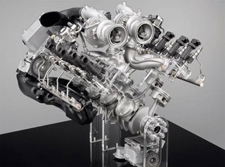 Особливістю 4.4 -літер V8 з подвійним підсиленням Twin Turbo є те, що колекціонери, турбокомпресони та каталітичні нейтралізатори встановлюються не з боків блок циліндрів (як зазвичай), а вгорі в його колапсі. Такий макет дозволив зробити надзвичайно короткі вхідні канали. Як результат, витрачені гази не мають часу на охолодження та введення турбін гарячих, що автоматично зменшує втрати енергії. Крім того, вихлопним трубопроводам вдається надати правильну конфігурацію в колапсі, в якій імпульси вихлопу не накладаються в колекціонерах один на одного і не заважають заповненню циліндрів свіжою паливною сумішшю.