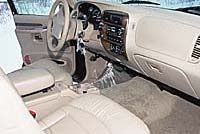 Проте за наявністю комфортабельних приблуд, TrailBlazer б'є Explorer як лежачого. Неспроста він зірвав оплески на уявленні, іменованому Детройтський автосалон 2002 року, і завоював титул Truck Of The Year. У кнопках, керуючих функціями бортового комп'ютера і розташованих на кожній з чотирьох спиць керма, ми розібралися тільки на другий день. Через цей комп'ютер (сподіваюся, програмісти з Microsoft не доклали до нього руку) можна управляти численними сервісними функціями - стежити за витратою палива, налаштовувати сигналізацію і алгоритм роботи освітлення (можна виставити затримку вимикання фар на пару хвилин, щоб в темний час доби дійти від стоянки до будинку), управляти таймером. Тільки що кава не варить і дітей не виховує ...