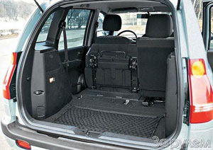 Стовбур не невеликий і не великий - 350 літрів, утворюючись близько до геометрично правильного прямокутного паралелепіпеда. Крім того, переміщуючи задні сидіння вперед, ви можете трохи збільшити цей об'єм і скласти їх, принести потужність до 1285 літрів.
