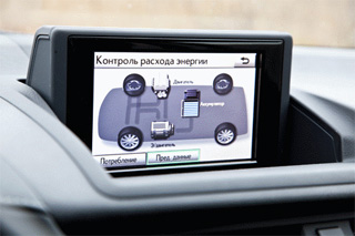 На центральний дисплей можна вивести масу інформації: від карти навігації до тижневих графіків паливної економічності і схеми розподілу потоків енергії.