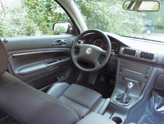Інтер'єр автомобіля практично ідентичний Пасатовському, і тому ми розкажемо лише про унікальні особливості салону Skoda. Місце водія відкриває прекрасний вид на центральну панель дорогого пластику, яка в поєднанні з хромованим декором та вставками для алюмінію створює враження багатства. Пристрої, стилізовані для хронографів, дають спеціальну пікантність картині. І все це найвища якість: нічого скаржитися навіть на все наше журналістське бажання.