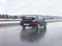 Крани тіла настільки маленькі, а супернатні заможні шини виміру 215/45 R17 чіпляються в покриття з таким мертвим захопленням, що виникає відчуття вседозволивості. Ви збільшуєте швидкість, а потім більше, і автомобіль продовжує писати траєкторію з дивовижною рівномірністю. Звичайно, чудес немає - незалежно від того, наскільки ідеальним є машина, єдине питання, як швидко ви підходите до його обмежувальних можливостей. На сухому асфальті обертання Імпреза близьке до нейтрального, але варто перестаратися з газом у вигині - його досить різко натиснуть на педаль акселератора - як автомобіль починає плавно висунути передню вісь з траєкторії. Те саме відбувається на мокрому дорозі, лише на нижчих швидкостях. В принципі, ви можете вийти з певної ситуації, додавши газ з подібної ситуації і тим самим спричиняючи відсутність задньої вісь. Спробуємо: ледь помітно махаючи спиною, Імпреза не відмовляється ковзати, лише зараз цей слайд має більш бічний характер. Вже простіше впоратися з ним - просто скинути газ. Якщо ви любите дрейфи і знаєте, як балувати машину приводом на всі колеса, то слід увімкнути сніжні доріжки. Тут Імпреза буде готова і дуже слухняно помститися хвостом, аматом гордості та спортивних амбіцій його власника. На тлі такої зразкової керованості, єдине, з чим вам доведеться миритися, -це відсутність зусиль, що повертаються на кермі, у зоні близької промені.