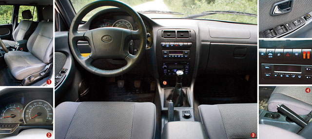 Передні крісла запозичені з Ssangyong Rexton, завдяки якому посадка досить зручна. Ергономіка добра, але є загальне відчуття дешевизни та невизначеності. Однак варто пам'ятати старий хороший козел, де все виготовляється з заліза, як знайти пацієнтів більше не хочуть кроку вперед величезний. І це приємно, загальні чіпси зберігаються такі, наприклад, як кран зсуву танка. Так, так, вони ще два тут: у випадку, якщо перші постріли ворогів на розбирання або друзів на полюванні, другий завжди вийде. До речі, патріотський салон перетворюється в спальню, яка також зручна для справжньої людини. Коротше кажучи, ось російський дух, тут пахне Росія