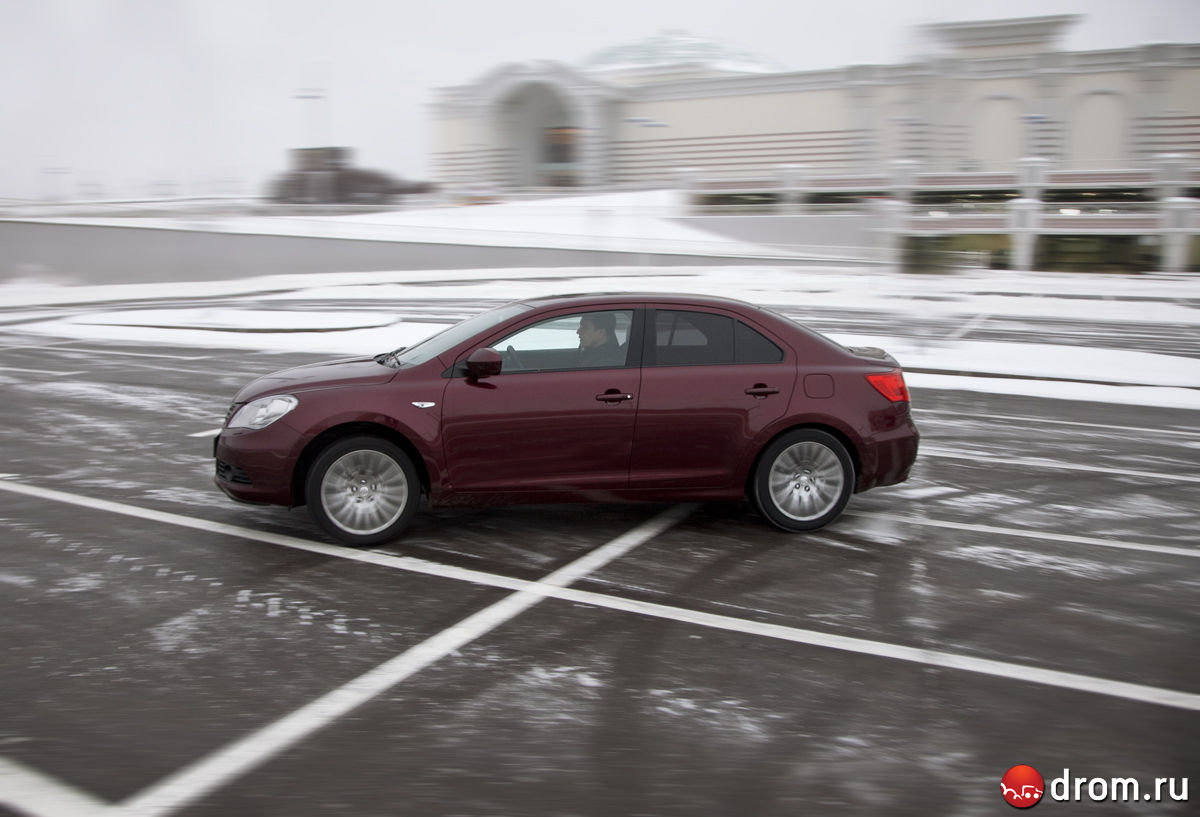Kizashi має відмінну аеродинамікою і гранично стабільний навіть на зимовій трасі на швидкості добре за 150. Перестроювання даються легко і приємно. Єдиний нюанс, характерний для всіх машин з великими колесами і низькопрофільною гумою необхідні подруливания при проїзді колії. Наявність повного приводу означає тут не тільки максимально ефективний розгін, а й непогану можливість їздити боком настройки це дозволяють. Однак коли починається їзда віялом все ж трохи жалієш, що повнопривідна модифікація доступна виключно з варіатором, хоч і з можливістю ручного перемикання. Ех, сюди б механіку! Упевнений, з нею це була справжнісінька машина для водія швидка, легка і чесна