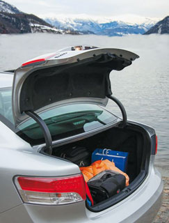 Лаконічний, строгий інтер'єр грамотно спланований, ретельно виконаний, а в обробці використані якісні матеріали. Виглядає він досить консервативно, але цілком доречний для солідного автомобіля D-сегмента. Дещо старомодною сприймається амбразура бляклого рідкокристалічного дисплея з кліматичної інформацією, розташованого на центральній консолі. Це особливо впадає в очі на тлі шикарного оптитронной щитка приладів з приємною апельсиново-сніжною підсвічуванням. Звичний ручник відсутній: його замінює електроклавіша стоянкового гальма. В принципі, досить зручно, але на витівки в віражах накладено табу. За словами головного інженера проекту Такаші Ямамото, новий Avensis перевершує конкурентів в ступеня насиченості машини високотехнологічним обладнанням. Сміливо! Але як би там не було, навіть базова комплектація Комфорт (а всього їх шість) має розумним набором бортових принад, серед яких кондиціонер, музика з CD / MP3 / AUX, протизанесення, сім подушок безпеки та інше. Далі по наростаючій. Апогей оснащеності версія Люкс. Тут є все від шкіри і блютуза до круїз-контролю і адаптивного біксенона, від датчика дощу і роздільного клімату до безконтактного ключа і русифікованої навігації. Але особливо в топової версії японці пишаються обробкою центральної консолі, джерелом натхнення при створенні якої послужив такесумі японський деревне вугілля з бамбука. З перевезенням речей в новому Avensis проблем не виникне. Ємний пятісотлітровий багажник седана здатний поглинути валізи в розумно-достатній кількості, а універсал взагалі прірву вантажу.