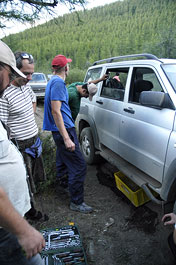 Ми замінюємо коригу, дреати бензину з обох танків. Лати-отвір з холодним зварюванням. Залити бензином назад і продовжуйте шлях до табору. Все залишає протягом декількох хвилин сорок. Після цього інциденту, поранений патріот вдалося їздити приблизно за 800 км з його рухом. до Барнаулу. Отримати до табору. Вранці ми чекаємо прогулянки до льодовика та правильного шляху до Барнаула. Тим часом, обід: кебаб біля вогню, сауна. Незважаючи на те, що в пробігу, нові автомобілі брали участь, що не пройшли бігу, ані перші так., Незважаючи на жорстку експлуатацію, можна сказати, що не було пошкоджень через недоліки. Найбільш неприємний момент перегріву склоочисників. Для вражаючих фотографій на УАЗ навіть робили пару стрибків з відокремленням всіх чотирьох коліс. Для всіх вузлів експеримент пройшов безболісно.